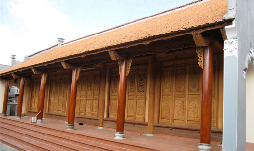 Một vẻ đẹp tiềm ẩn trong mỗi cánh cửa, những cột trụ được khắc họa những hoa văn kết hợp với mầu gỗ lâu tạo nên một ngôi nhà tuyệt hảo với phong cách cổ điển. Cùng những viên ngói tạo nên một ngôi nhà ấm cúng cùng gia đình quây quần với nhau mỗi ngày. Không khí gia đình sum họp, quây quần bên nhau bao trùm cả ngôi nhà.