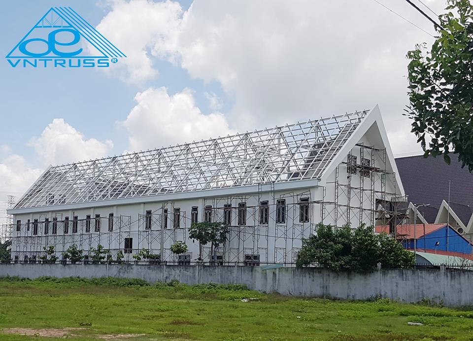 công trình nhà thờ sử dụng khung kèo xà gồ thép mạ hợp kim nhôm kẽm AZ100 AZ150 G550