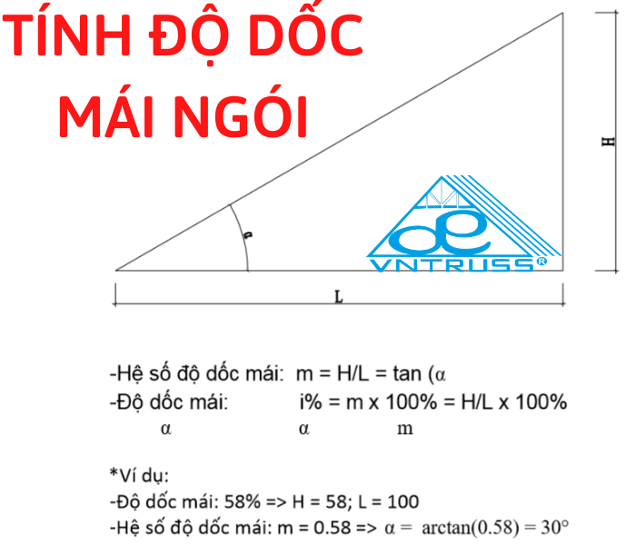 - Công thức tính này áp dụng cho cả độ dốc i và độ dốc m, độ dốc m thường được sử dụng trong lợp mái ngói. Giả sử hình trên được tính độ