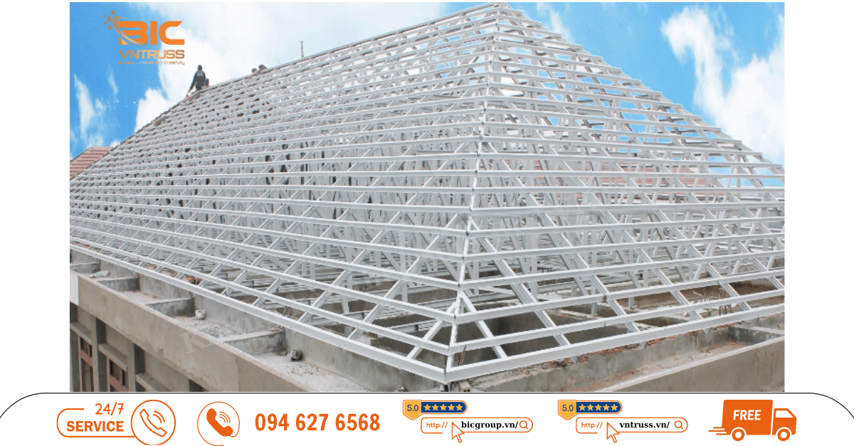 Trong số các giải pháp về kết cấu mái ngói kèo thép, BIC VNTRUSS luôn là lựa chọn hàng đầu của các nhà thầu và kiến trúc sư. Với những ưu điểm nổi bật về chất lượng và thiết kế, kèo thép nhẹ BIC VNTRUSS không chỉ đảm bảo tính thẩm mỹ mà còn mang đến độ bền và hiệu suất cao cho công trình.