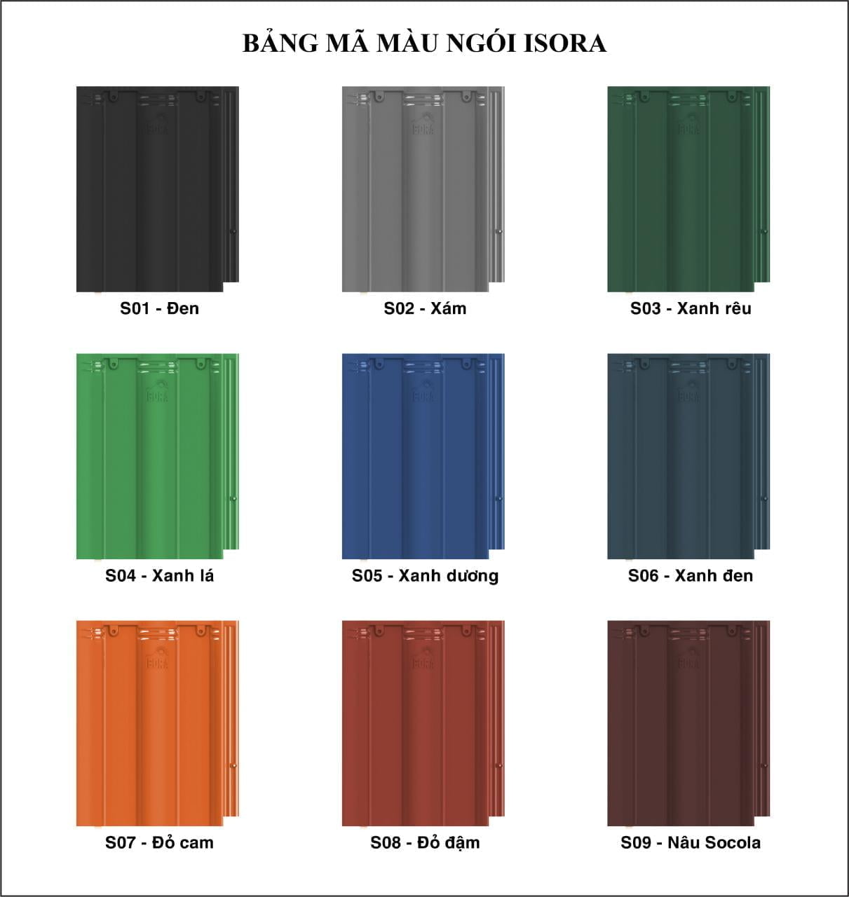 Mời Quý vị xem thêm bảng mã màu ngói lợp nhà tốt nhất ISORA